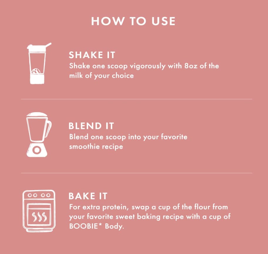 هز مغرفة واحدة بقوة مع 8 أوقية من الحليب الذي تختاره في زجاجة شاكر، أو امزج محتويات العبوة في وصفة العصير المفضلة لديك، أو استخدمها في الوصفات لإنشاء علاجات الرضاعة اللذيذة.