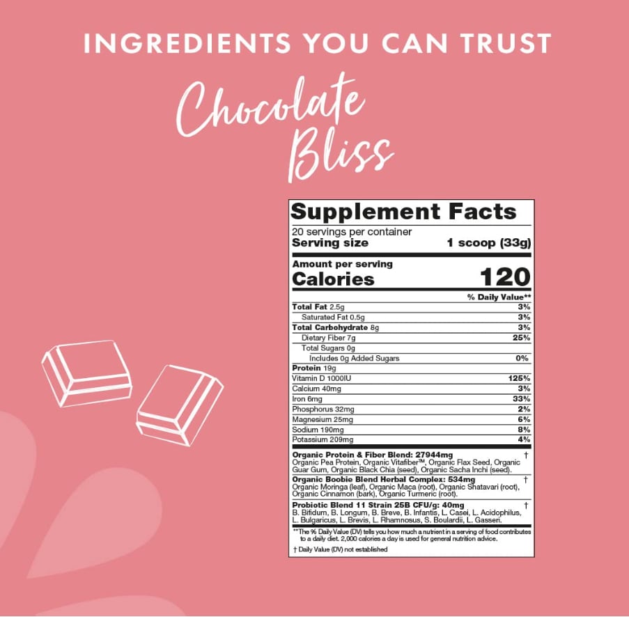 جرعتك اليومية من الأطعمة الفائقة المعتمدة من Boobie: Supermoms، استعد للحصول على دفعة فائقة! يأتي مسحوق البروتين النباتي الخاص بنا محملا ب 19 جراما من البروتين النباتي، وتسعة أطعمة فائقة العضوية، و1 فقط من الكربوهيدرات الصافية، وصفر سكر، و1000 وحدة دولية من فيتامين د - كل ما تحتاجه الأمهات المشغولات في هزة بروتين لذيذة واحدة!