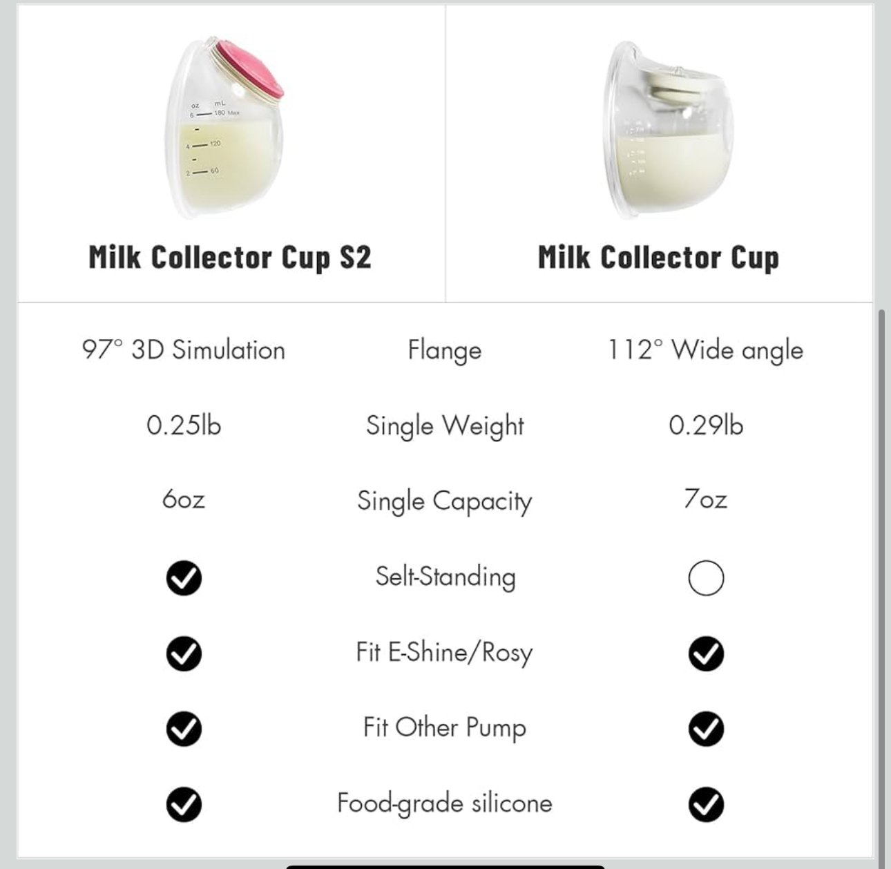 سعة كل كوب 12 أونصة / 360 مل لتجميع كمية أكبر من الحليب دون الحاجة للتفريغ المتكرر.