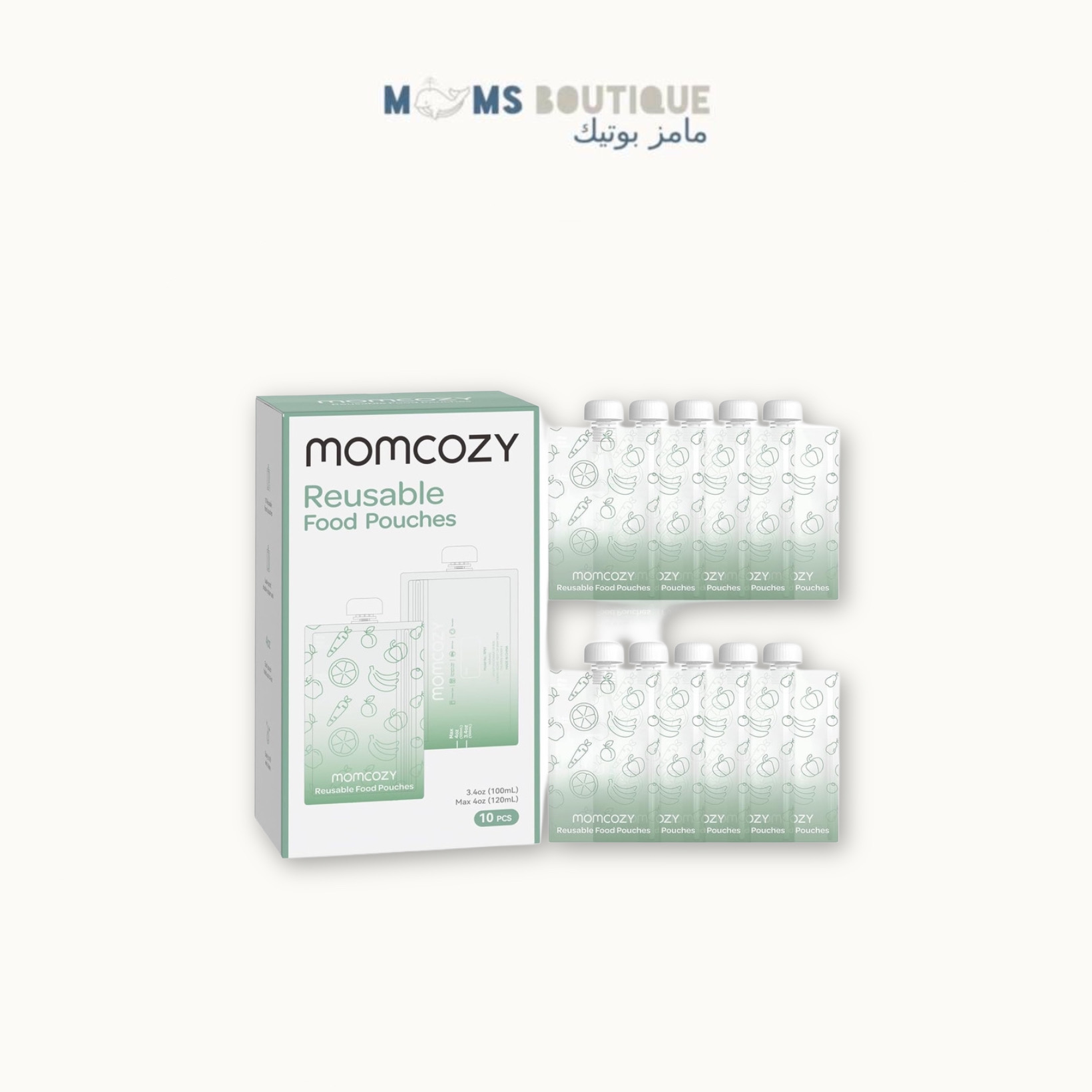 Momcozy – أكياس طعام أطفال قابلة لإعادة الاستخدام | لتقديم المهروس، الزبادي، وصلصة التفاح – عبوة من 10 أكياس (100 مل)