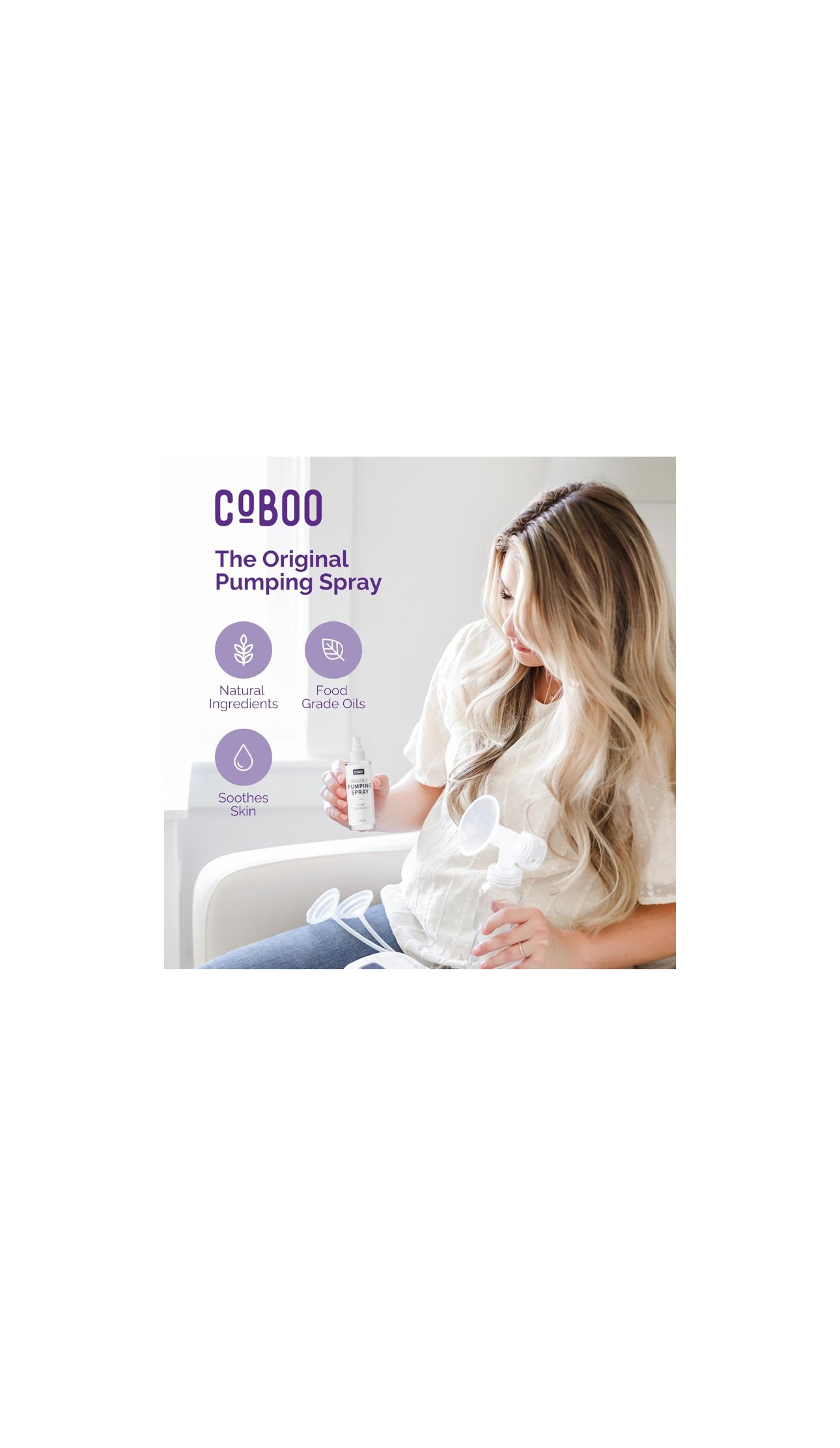 يُرش على منطقة الصدر أو على قمع مضخة الحليب قبل الاستخدام لتحسين الانزلاق والراحة أثناء الضخ. آمن على الرضيع