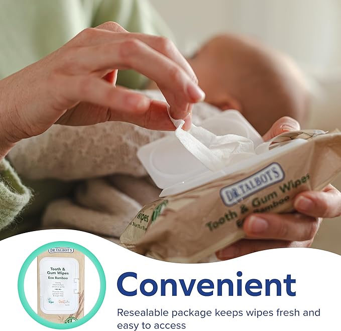 BIODEGRADABLE WIPES: Dr. Talbot's Dental & Gum Wipes are eco-friendly, biodegradable bamboo wipes.