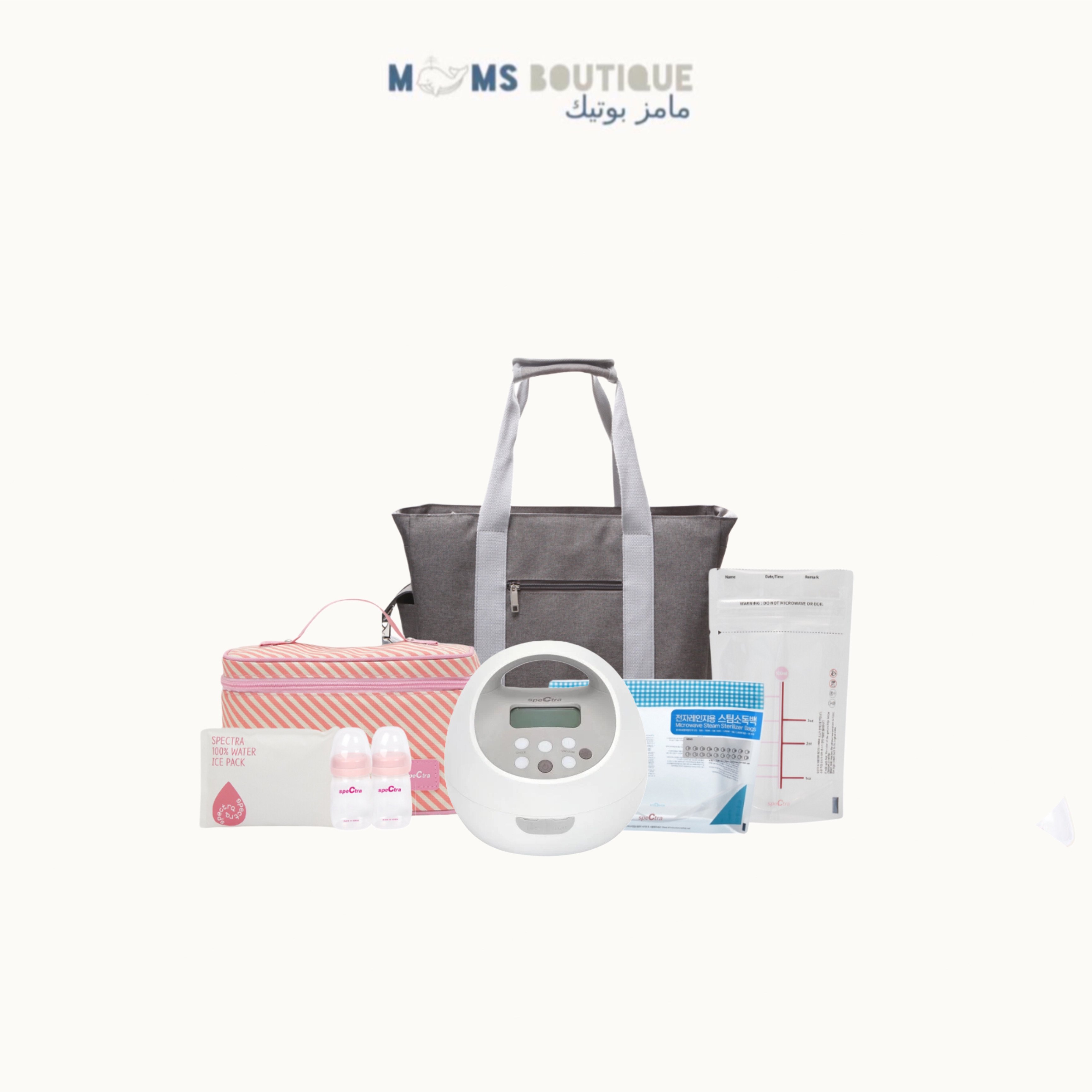 The set comes with a sturdy grey bag that is large enough to transport the breast pump and its accessories.