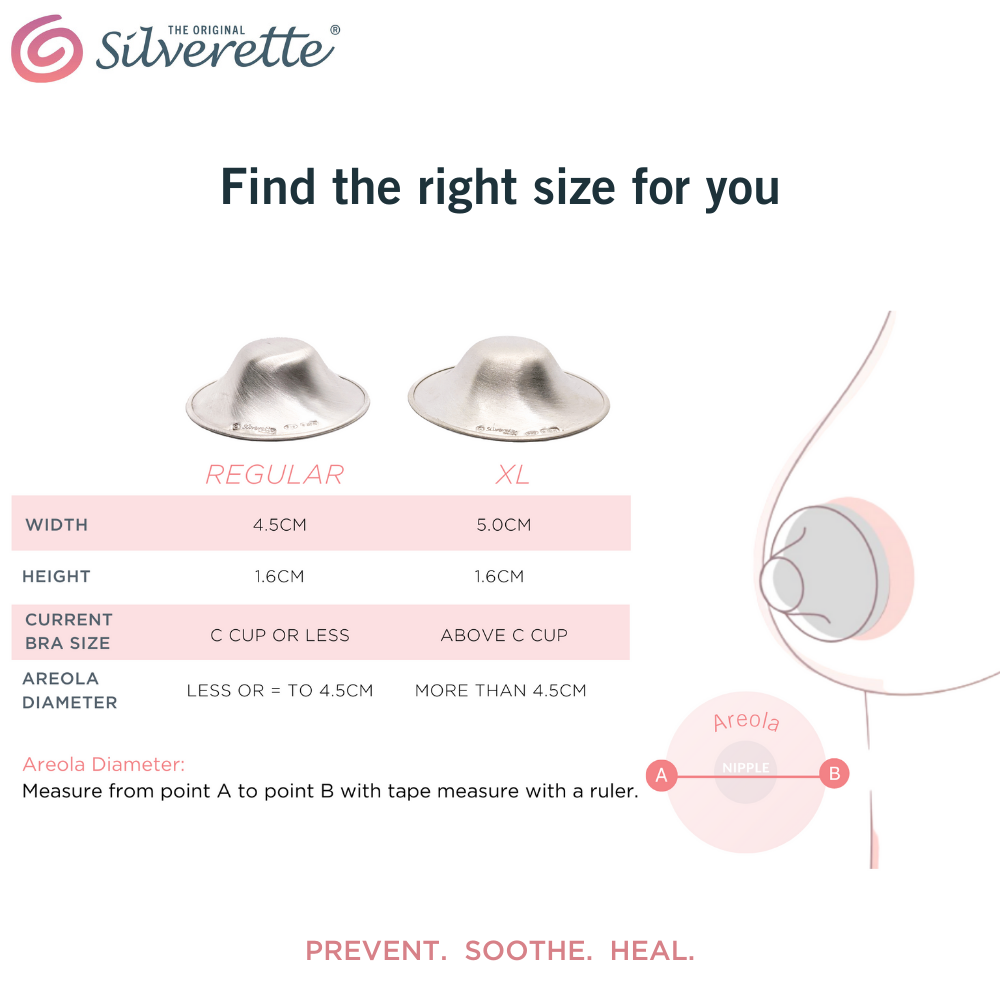 - Silverite shields are available in different sizes to prevent pain, cracking and irritation.