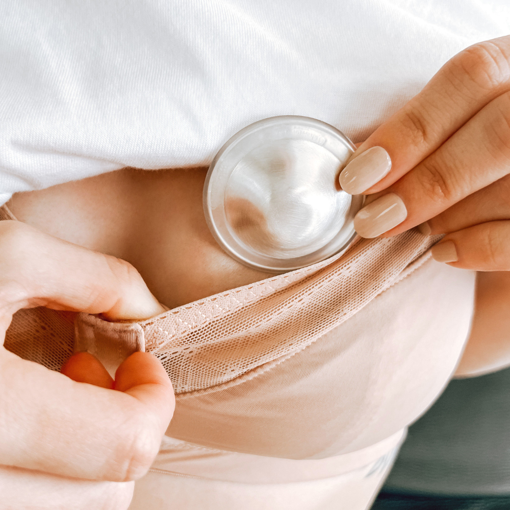 How to use: Gently press a ring or vel onto the Silverette shield. Do not press too hard. Once the ring is on the shield, place a few drops of breast milk into each shield after each breastfeeding session, and place the shield directly over the nipple like an air cup. Wear Silverette shields as often as possible between feedings. Remove before feeding.