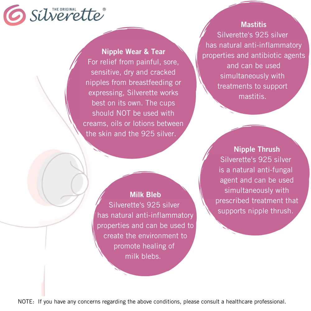 - Small shields from Silverite made of pure 925 sterling silver are easy to wear and protect nipples when breastfeeding.