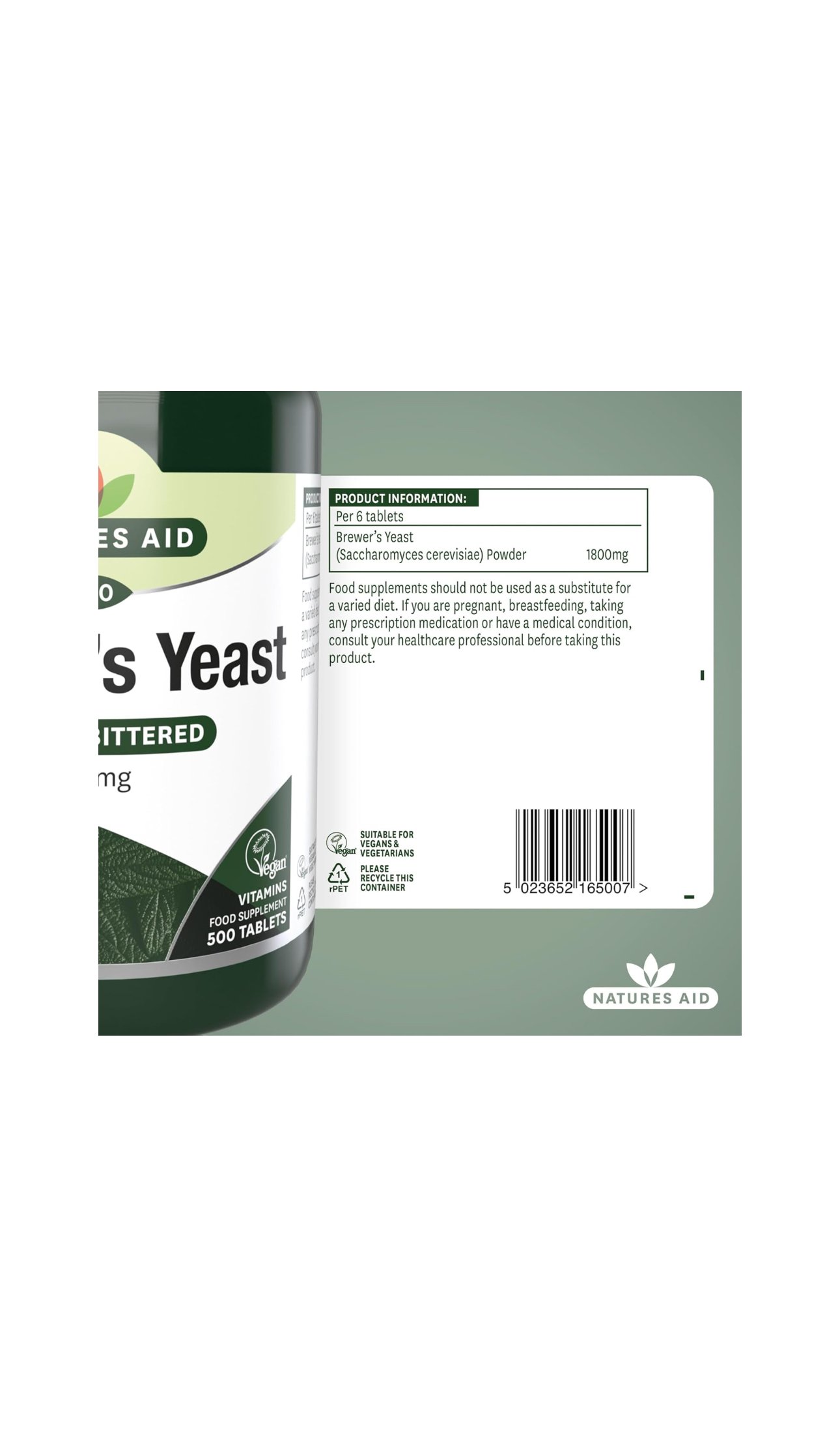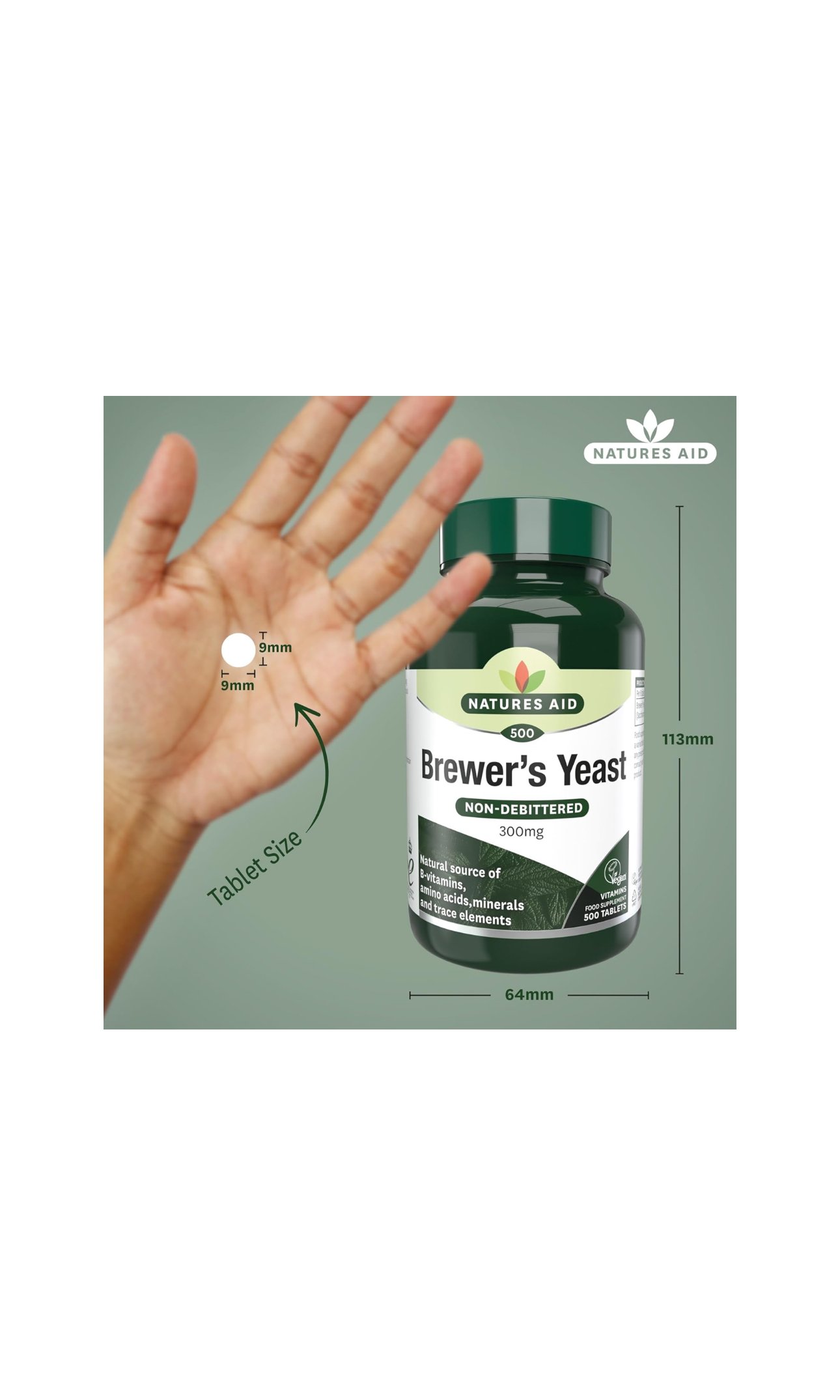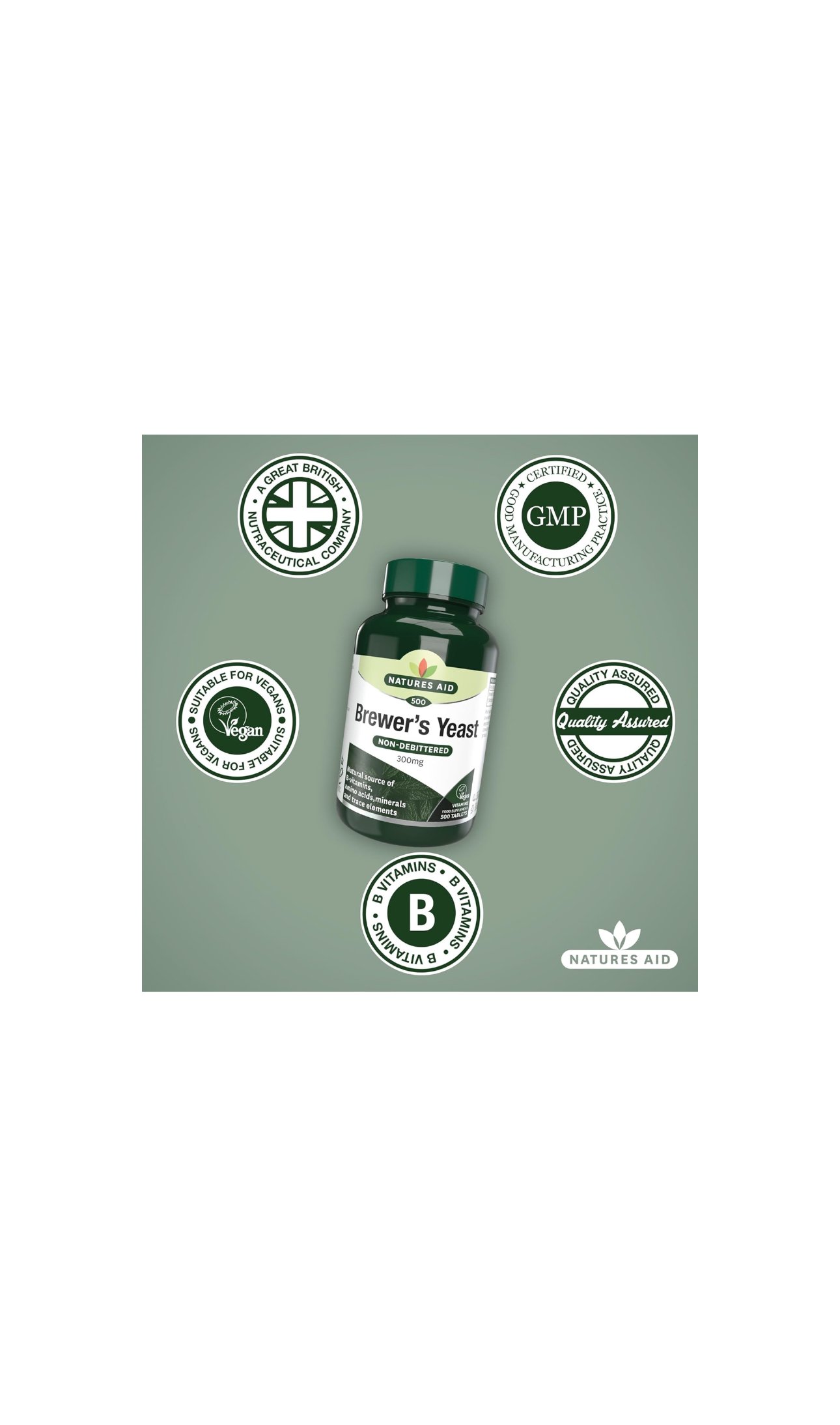 Nature's Aid Brewer's Yeast is a natural nutritional supplement containing a variety of vitamins and minerals, particularly B vitamins, essential for supporting overall health. It is used to boost energy, improve skin, hair, and nail health, and support the digestive system.